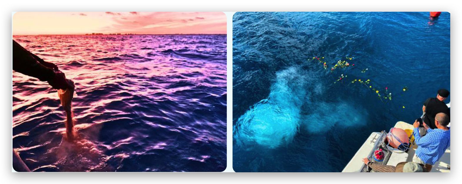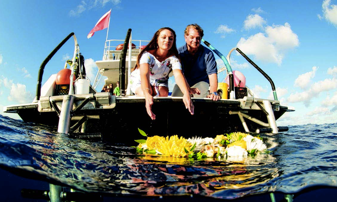 The Scatter at Sea package is a truly special sendoff. Our dive team scatters the ashes above the Reef. Then divers install a customized copper plaque that is affixed to the reef as an everlasting tribute.